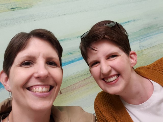 We walked down to my biopsy appointment and Tom left for a Dr. appointment that he had today. Crystal (who everyone thinks is my sister) came and kept me company for a bit until my procedure.